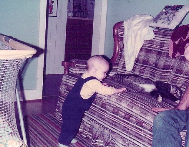~ me, Gato (the cat), and my dad(?) sitting on the couch in 1978 ~