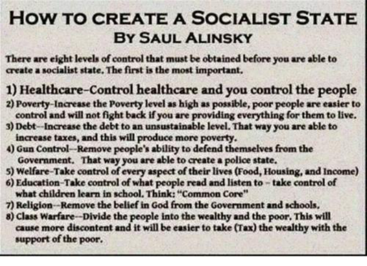 8) Class Warfare: divide people into the wealthy and the poor, this will cause more discontent and it will be easier to take (tax) the wealthy with the support of the poor