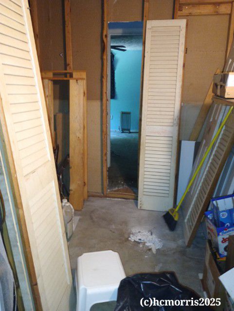 This makes things a bit easier all the way around. It’s a small walkthrough, but it works. The door isn’t screwed into the wall yet, but will be soon.