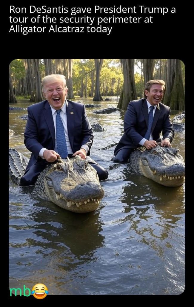 Ron Desantis gave President Trump a tour of the security perimeter at Alligator Alcatraz today