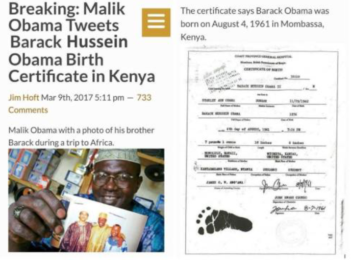 Breaking: Malik Obama tweets Barrack Hussein Obama Birth Certificate in Kenya (March 9, 2017)