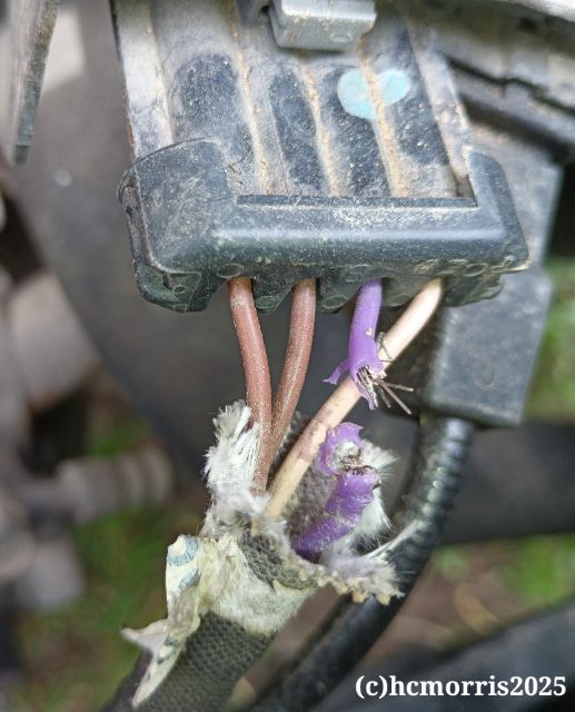 It said that the O2 sensor had no connectivity, so I popped the hood to see what I could see. Right in my face, the wire had been chewed (above).