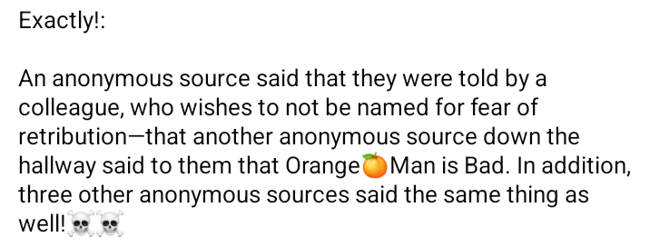 An anonymous source said that they were told by a colleague, who wishes to bot be named for fear of retribution –