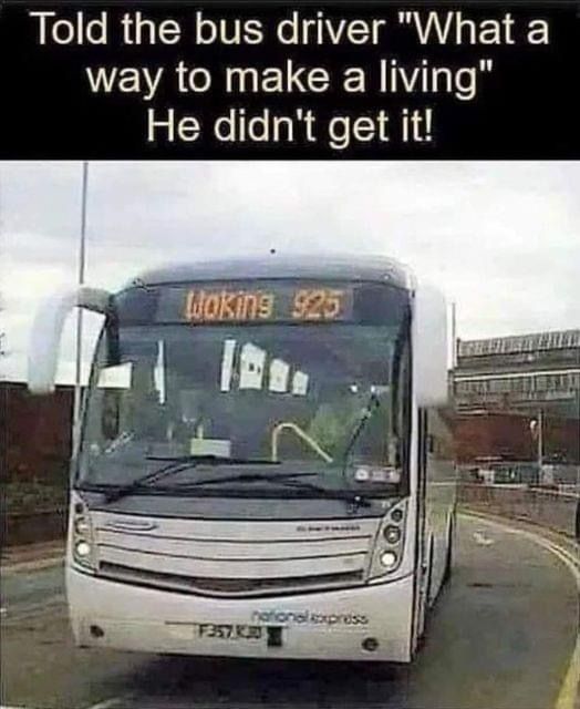 Told the bus driver “what a way to make a living”, he didn’t get it.