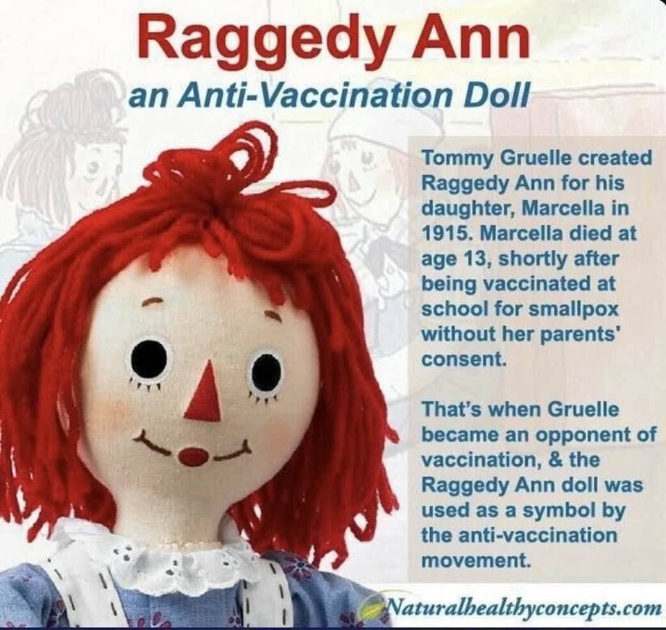 That’s when Gruelle became an opponent of vaccination and the Raggedy Ann doll was used as a symbol by the anti-vaccination movement.