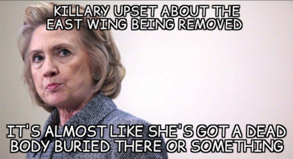 Killary (Hilary) upset about the East Wing being removed/ demolished… it’s almost like she’s got a dead body buried there or something