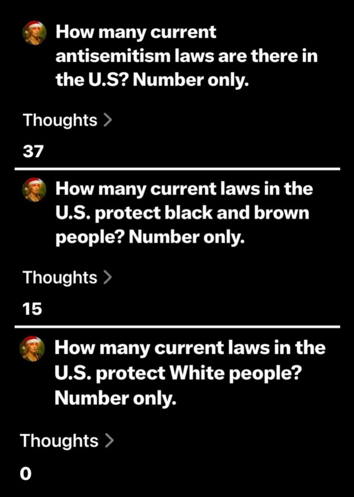 How many current laws in the US protect white people? Numbers only ~ 0