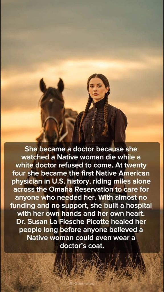She became a doctor because she watched a Native woman die while a white doctor refused to come. At twenty-four she became the first Native American physician in US history, riding miles alone across the Omaha Reservation to care for anyone who needed her. With almost no funding and no support, she built a hospital with her own heart. Dr. Susan La Flesche Picotte healed her people long before anyone believed a Native woman could even wear a doctor’s coat.