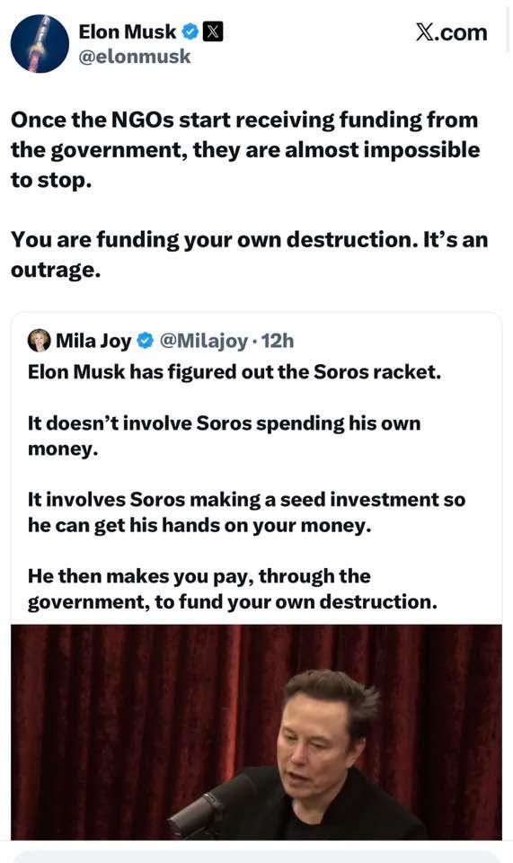 Elon Musk has figured out the Soros racket. It doesn’t involve Soros spending his own money. It involves Soros making a seed investment so he can get his hands on your money. He then makes you pay, through the government, to fund your own destruction.
