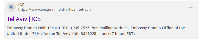 He was sharing videos of people saying that ICE is going after US citizens…for sharing antisemitic material. The IDF is incorporated into ICE, and so on and so on. I looked up the ICE field offices in the US…there are at least 8 pages of addresses! So I looked up ICE field offices in Tel Aviv, looks like there are ‘counterterrorism’ offices. Which makes sense.
