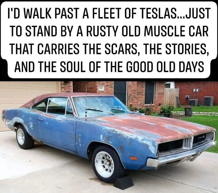 I’d walk past a fleet of Tesla’s …just to stand by a rusty old muscle car that carries the scars, the stories, and the soul of the food old days.