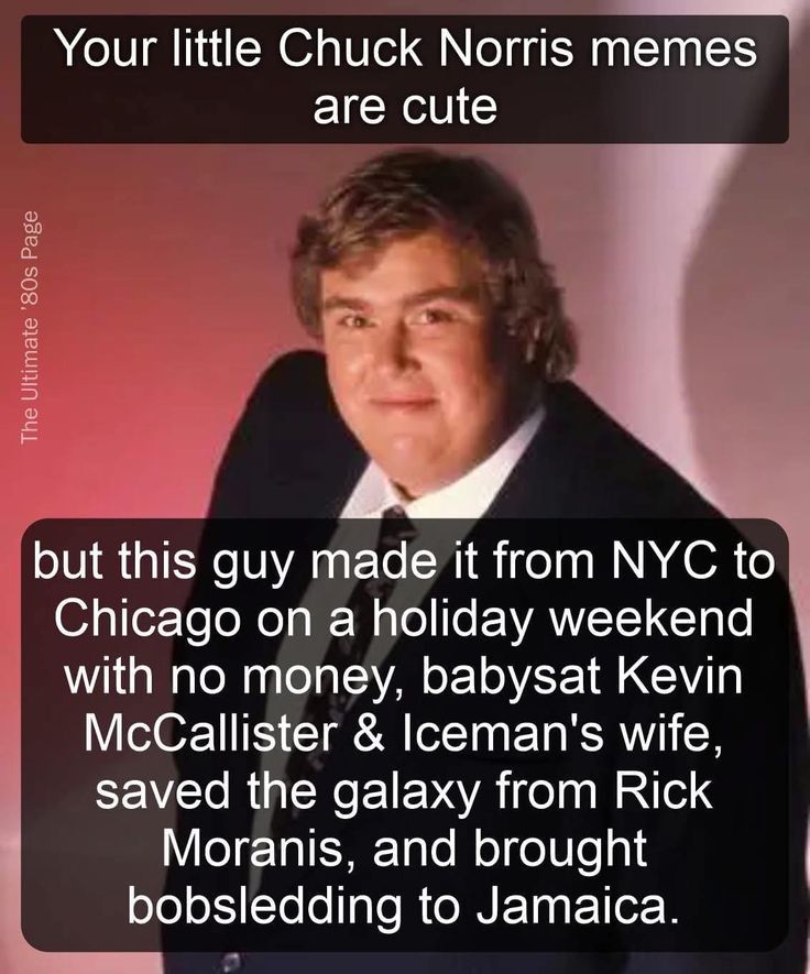 Your little Chuck Norris memes are cute, but this guy (John Candy) made it from New York City to Chicago on a holiday weekend with no money, babysat Kevin McCallister and Iceman’s wife, saved the galaxy from Rick Moranis, and brought bobsledding to Jamaica.
